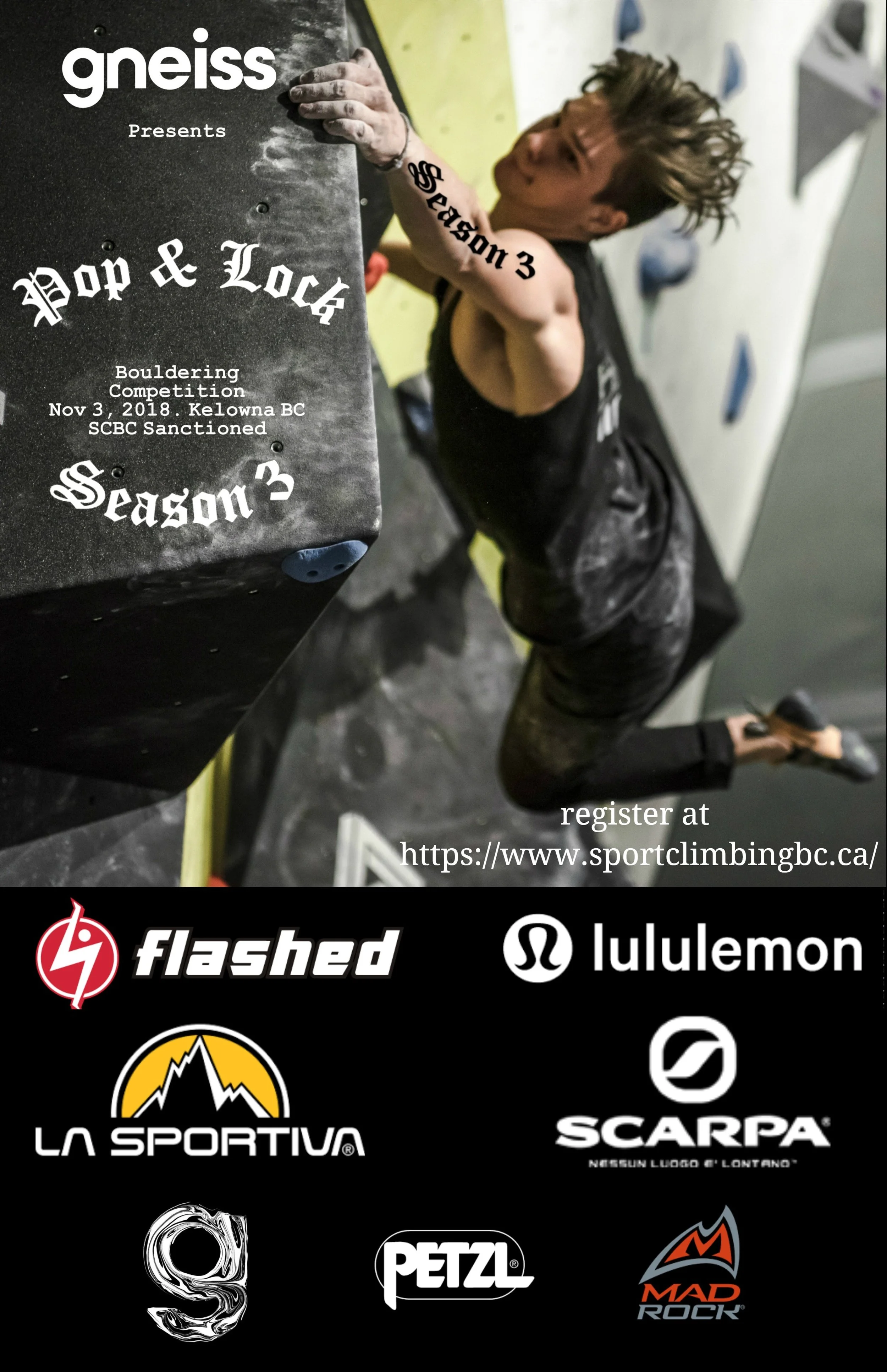 8 years of Pop + Lock with Sport Climbing BC! 8 years trying to put on the best comp in the Province. This year we are LOCKING IN! SCBC will be running the show, Hill Security will host, Simon Parton will head set. Come and compete with the best in the Province. Finals will be Sat night, we will have a full house… vibes will not disappoint!